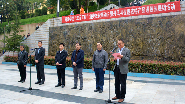 10月17日,時(shí)值第6個(gè)國(guó)家扶貧日和第27個(gè)國(guó)際消除貧困日,為進(jìn)一步推進(jìn)“雙百工程”脫貧攻堅(jiān)活動(dòng)深入開(kāi)展,號(hào)召全校師生投身脫貧攻堅(jiān)熱潮之中,我校與丹鳳縣人民政府聯(lián)合舉辦了“商洛學(xué)院‘雙百工程’消費(fèi)扶貧暨丹鳳縣優(yōu)質(zhì)農(nóng)特產(chǎn)品進(jìn)校園”展銷(xiāo)活動(dòng)。校黨委副書(shū)記彭虎軍、丹鳳縣副縣長(zhǎng)郝新軍出席活動(dòng)啟動(dòng)儀式并講話,副校長(zhǎng)劉寶盈主持儀式,副校長(zhǎng)劉勇出席。我校相關(guān)職能部門(mén)負(fù)責(zé)人、教師代表,丹鳳縣教科體局、農(nóng)業(yè)農(nóng)村局負(fù)責(zé)人等參加活動(dòng)啟動(dòng)儀式。