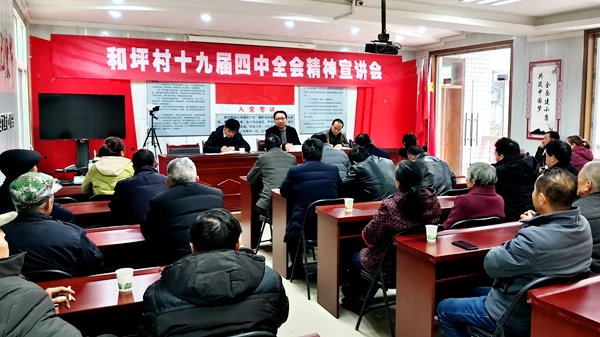 11月29日,校黨委書記龍治剛赴我校包扶村——鎮(zhèn)安縣回龍鎮(zhèn)和坪村宣講黨的十九屆四中全會精神,并指導脫貧攻堅工作。該村“四支隊伍”、黨員代表、群眾代表共計40余人聆聽了宣講。副校長王新軍、黨委辦公室·院長辦公室主任張向東一同參加了宣講活動。