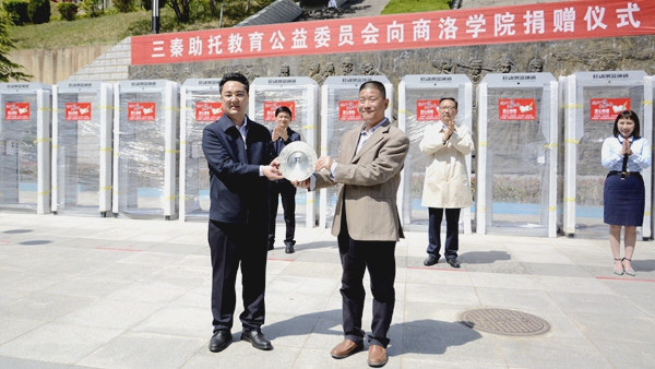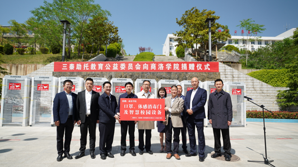 4月26日,三秦助托教育公益委員會(huì)向我校捐贈(zèng)一批醫(yī)用口罩、體感消毒門及智慧校園設(shè)備,商洛市委副書記、市長(zhǎng)鄭光照,三秦助托教育公益委員會(huì)首席執(zhí)行官、億和盛豐集團(tuán)董事局主席黃鵬,三秦助托教育公益委員會(huì)執(zhí)行官、中建海峽建設(shè)發(fā)展有限公司陜西區(qū)域市場(chǎng)部總經(jīng)理郭娜,校黨委書記龍治剛,校長(zhǎng)范新會(huì),副校長(zhǎng)劉勇出席捐贈(zèng)儀式。儀式由副校長(zhǎng)王新軍主持。