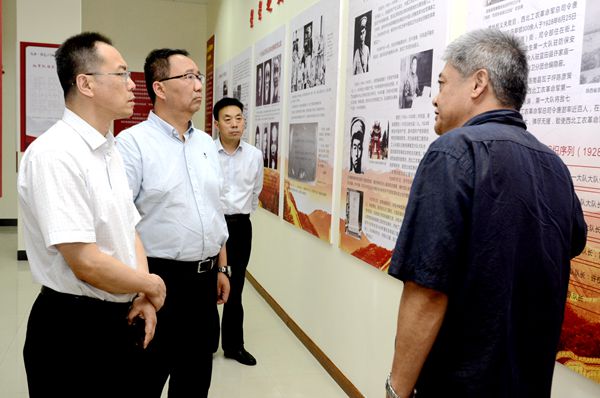 會后,評估驗收組一行在龍治剛、彭虎軍的陪同下,對我?!皹影逯Р俊苯ㄔO(shè)情況進(jìn)行了實地考察,認(rèn)真查看了相關(guān)資料,并參觀了我校商洛紅色文化資料館。