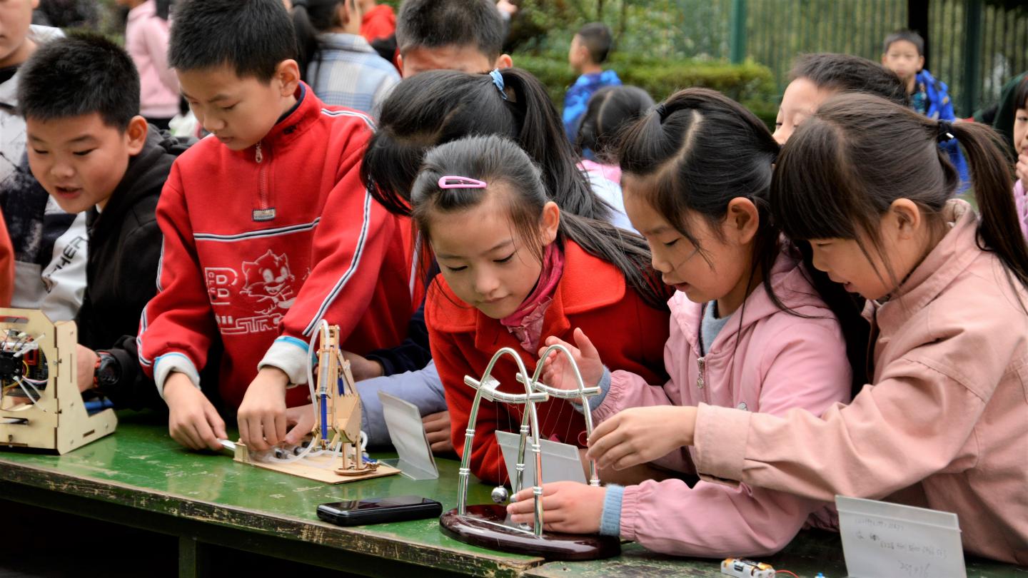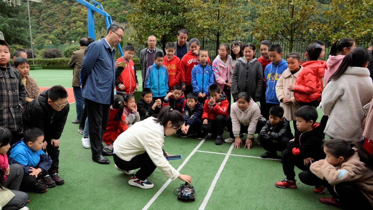我?!班l(xiāng)村流動科技館”的科普使者們把各式各樣新奇好玩的科技作品和航模飛行器帶到和坪村小學(xué)進行展覽,以精彩的情景劇和現(xiàn)場講解,串聯(lián)展示了趣味密度實驗(陜西省科學(xué)實驗大賽二等獎獲獎作品)、自制汽水實驗、美麗化學(xué)試驗和廢物利用—音箱、昆蟲“琥珀”標(biāo)本制作等科普試驗,手把手教小朋友們遙控小坦克、小汽車,帶著他們一起放飛航模飛行器,讓他們在互動中領(lǐng)略科學(xué)的神奇魅力,引導(dǎo)他們張開理想的翅膀,在更加廣闊的天地勇敢追夢。