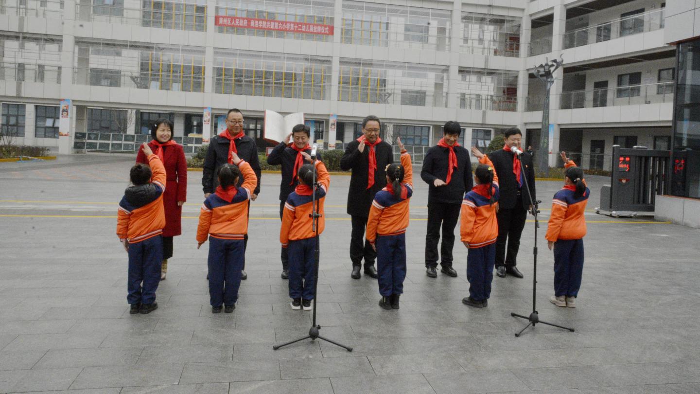 儀式伊始,小學(xué)生代表為與會(huì)領(lǐng)導(dǎo)嘉賓佩戴紅領(lǐng)巾。