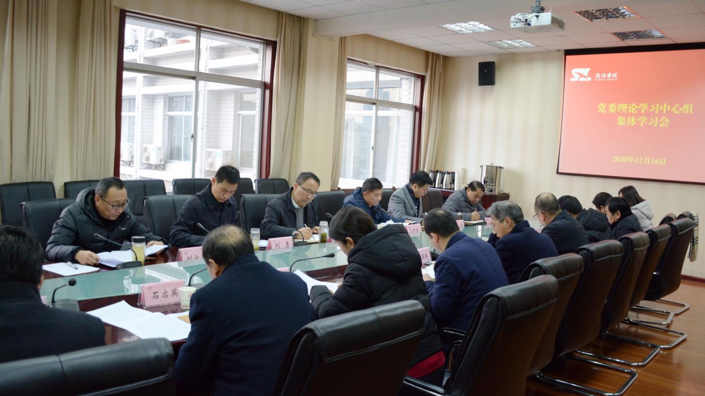 12月16日,校黨委書記龍治剛主持召開黨委理論學習中心組學習會,集體學習習近平總書記在紀念中國人民志愿軍抗美援朝出國作戰(zhàn)70周年大會上的重要講話、在全國勞動模范和先進工作者表彰大會上的重要講話、在中央政治局第二十六次集體學習時的重要講話精神,深入學習《深化新時代教育評價改革總體方案》,理論學習中心組成員參加會議。