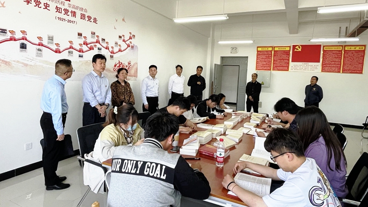 督導(dǎo)檢查期間,指導(dǎo)組聽(tīng)取了學(xué)校工作匯報(bào),實(shí)地考察了我校商洛紅色文化資料館、商洛文化暨賈平凹研究中心及藝術(shù)展廳,深入馬克思主義學(xué)院查看黨史學(xué)習(xí)教育相關(guān)資料,了解工作特色亮點(diǎn),走訪(fǎng)了電信學(xué)院、化材學(xué)院團(tuán)總支青年閱讀角,檢查指導(dǎo)師生黨史學(xué)習(xí)教育開(kāi)展情況。
