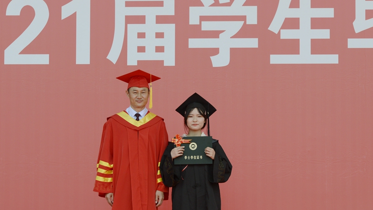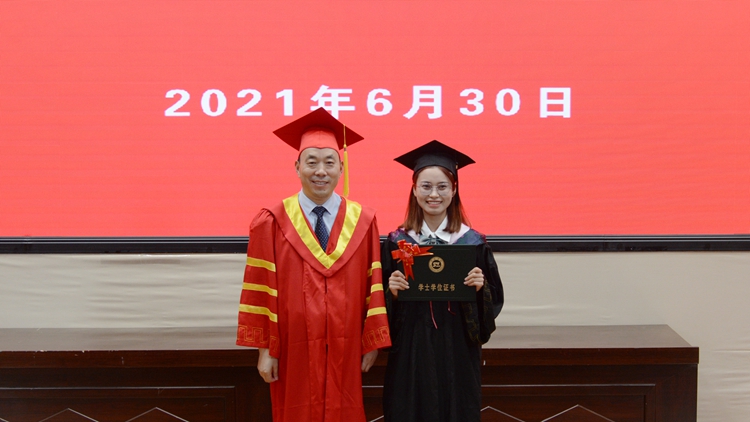 在學(xué)士學(xué)位授予儀式上,畢業(yè)生們依次走上主席臺(tái),校黨委副書記彭虎軍、劉勇,副校長(zhǎng)劉寶盈、王新軍分別為獲得學(xué)士學(xué)位的畢業(yè)生正冠撥蘇、頒發(fā)學(xué)位證書,并與他們一一合影留念。