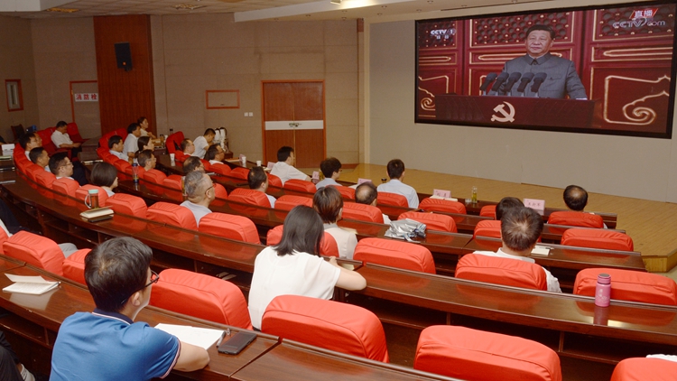 我校高度重視、精心部署,提前下發(fā)通知,組織師生通過在線方式集體收看大會(huì)實(shí)況。學(xué)校在圖書館一樓報(bào)告廳設(shè)主會(huì)場,省委黨史學(xué)習(xí)教育第十三巡回指導(dǎo)組組長、商洛市人大常委會(huì)一級(jí)巡視員劉淑慧,全體校領(lǐng)導(dǎo)、黨委委員、機(jī)關(guān)副處級(jí)以上干部共同收看了大會(huì)直播,認(rèn)真聆聽習(xí)近平總書記的重要講話。各級(jí)黨總支、直屬黨支部、團(tuán)委設(shè)立20個(gè)分會(huì)場,組織廣大師生收看大會(huì)直播。