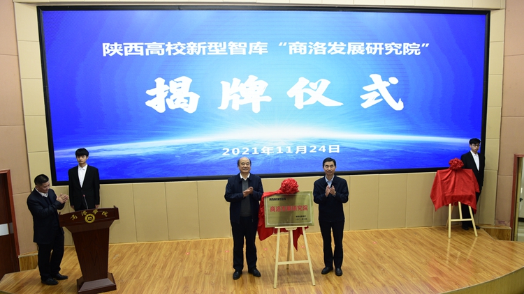 在與會領導的共同見證下,高嶺和權雅寧分別代表陜西省教育廳和商洛市人民政府簽署省市共建商洛學院協(xié)議。張軍林和劉建林共同為我校兩個新型科研平臺——陜西高校新型智庫“商洛發(fā)展研究院”和“秦嶺康養(yǎng)大數(shù)據(jù)陜西高校工程研究中心”揭牌。