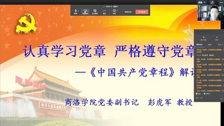 彭虎軍以《認(rèn)真學(xué)習(xí)黨章 嚴(yán)格遵守黨章》為題,從黨章概述、黨章的歷史沿革、黨的二十大通過(guò)的《中國(guó)共產(chǎn)黨章程(修正案)》解讀、怎樣學(xué)習(xí)貫徹落實(shí)黨章四個(gè)方面,詳細(xì)闡述了黨章的基本概念、特點(diǎn)、地位和作用,系統(tǒng)解讀了黨章的歷史沿革和歷次修改完善的重點(diǎn)內(nèi)容。他從11個(gè)方面講解闡釋了黨的二十大對(duì)黨章的修改情況及其豐富的內(nèi)涵,并指出學(xué)習(xí)貫徹黨章的基本方法和應(yīng)該掌握的重點(diǎn)問(wèn)題,強(qiáng)調(diào)了遵守黨章、尊崇黨章、維護(hù)黨章的重要意義和具體要求。