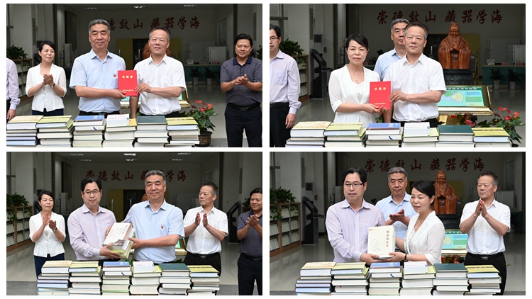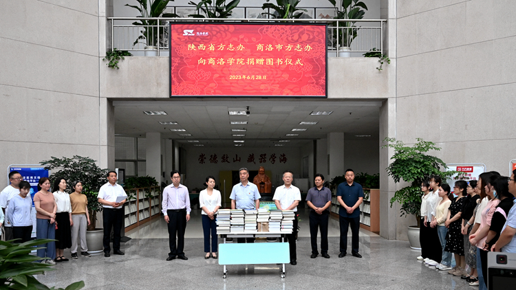 6月28日下午,陜西省地方志辦公室主任熊暉、商洛市人民政府地方志辦公室主任陳朝陽一行代表省、市地方志辦公室向我校捐贈《歷代詠陜詩詞曲集成》《商洛地區(qū)志》等志書、年鑒共89冊(件)。捐贈儀式在我校北新街校區(qū)圖書館舉行。校黨委書記張志昌,副校長王新軍出席儀式。院長辦公室、國內(nèi)合作與校友工作處、圖書館負責人,圖書館全體工作人員和學(xué)生代表參加儀式。