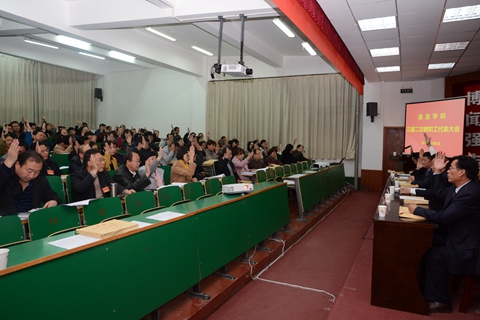11月2日,我校召開(kāi)三屆二次“教代會(huì)”,審議通過(guò)了《商洛學(xué)院“十三五”事業(yè)發(fā)展規(guī)劃(草案)》和統(tǒng)籌規(guī)劃建設(shè)丹江校區(qū)的報(bào)告。143名教代會(huì)正式代表、3名列席代表出席會(huì)議。