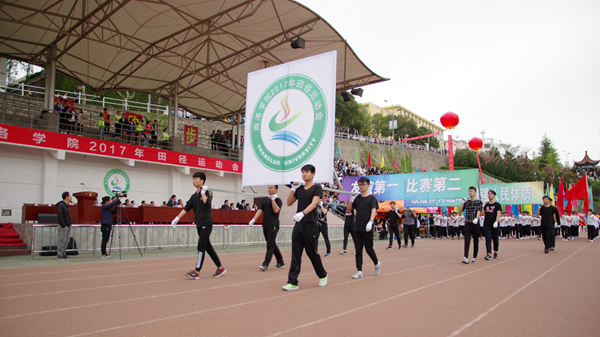 追逐四月的和風(fēng),沐浴初夏的陽(yáng)光,4月20日上午,我校2017年田徑運(yùn)動(dòng)會(huì)正式開幕。校長(zhǎng)范新會(huì)、紀(jì)委書記王思懷、副校長(zhǎng)劉勇出席開幕式。由各二級(jí)學(xué)院和教職工代表組成的10個(gè)方隊(duì),以昂揚(yáng)的姿態(tài)、矯健的步伐走過(guò)主席臺(tái),展現(xiàn)了我校師生意氣風(fēng)發(fā)、昂揚(yáng)向上的精神風(fēng)貌。范新會(huì)致開幕詞并宣布運(yùn)動(dòng)會(huì)開幕。各二級(jí)教學(xué)單位黨政負(fù)責(zé)人、各職能部門負(fù)責(zé)人以及全體學(xué)生參加本次運(yùn)動(dòng)會(huì)。開幕式由劉勇主持。