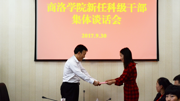 會(huì)上,黨委組織部部長(zhǎng)郭瑾宣讀了《中共商洛學(xué)院委員會(huì)關(guān)于李川川等17位同志任職的通知》和《商洛學(xué)院關(guān)于李晶晶等29位同志任職的通知》。新任科級(jí)干部代表趙萍作了表態(tài)發(fā)言。