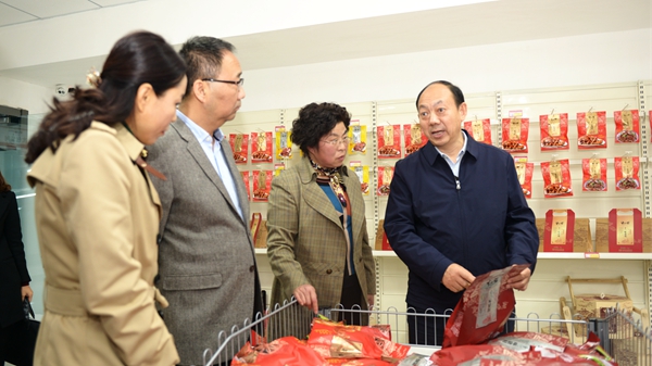 10月17日,來商參加深度貧困地區(qū)“雙百工程”精準(zhǔn)對接暨工作推進會后,省委高教工委書記董小龍深入我校丹鳳產(chǎn)業(yè)扶貧點考察調(diào)研。省委高教工委副書記李智軍、校黨委書記龍治剛、市政協(xié)副主席熊道宇,丹鳳縣委常委、副縣長李江峰陪同調(diào)研。