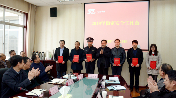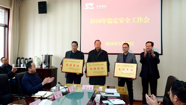黨委書記龍治剛傳達了全省高校穩(wěn)定安全工作會議精神,與職能部門及院部負責人代表簽訂了2018年穩(wěn)定安全工作責任書。紀委書記王思懷傳達了全省高校全面從嚴治黨工作會議精神。副校長魏書堂為先進集體及個人代表頒獎。