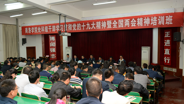 為了進(jìn)一步學(xué)習(xí)貫徹黨的十九大精神暨全國“兩會(huì)”精神,龍治剛對(duì)全校處科級(jí)干部提出三點(diǎn)要求:一是進(jìn)一步加強(qiáng)學(xué)習(xí),在提升政治素質(zhì)和業(yè)務(wù)水平上做文章。深入學(xué)習(xí)黨的十九大精神,提升政治素養(yǎng)。深入學(xué)習(xí)業(yè)務(wù)知識(shí),提升工作能力;二是進(jìn)一步轉(zhuǎn)變作風(fēng),在發(fā)揮干部引領(lǐng)示范作用上做文章。要永葆干事創(chuàng)業(yè)的激情,嚴(yán)守政治紀(jì)律和規(guī)矩,始終堅(jiān)持人民立場,加強(qiáng)自律守住底線;三是進(jìn)一步推動(dòng)落實(shí),在促進(jìn)學(xué)校事業(yè)發(fā)展上做文章。要當(dāng)“主攻手”不要當(dāng)“二傳手”,厲行節(jié)約提高效益,推進(jìn)民主增強(qiáng)團(tuán)結(jié),開好二級(jí)教代會(huì)完善績效分配改革。他希望全校處科級(jí)干部發(fā)揮好示范引領(lǐng)作用,與廣大教職員工共同努力,推動(dòng)黨的十九大精神和習(xí)近平新時(shí)代中國特色社會(huì)主義思想落地落實(shí),推動(dòng)我校第二次黨代會(huì)和2018年工作要點(diǎn)提出的各項(xiàng)工作有序開展,推動(dòng)學(xué)校改革發(fā)展和追趕超越取得實(shí)效。
