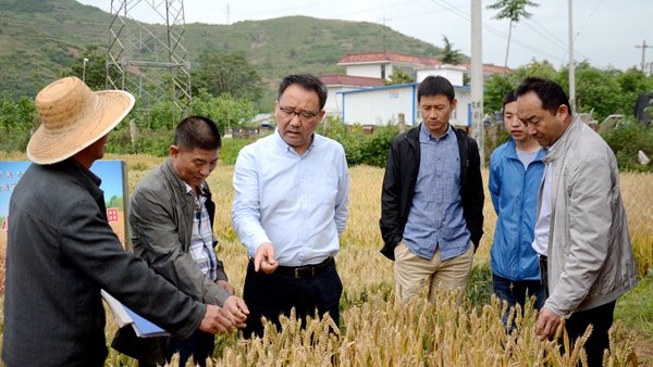 在張村校區(qū)試驗(yàn)站,小麥顆粒飽滿、玉米長(zhǎng)勢(shì)喜人、桔梗郁郁蔥蔥,一片生機(jī)勃勃的景象。校領(lǐng)導(dǎo)逐一仔細(xì)察看了小麥、玉米和桔梗的長(zhǎng)勢(shì),詳細(xì)詢問(wèn)了小麥和中藥材新品種選育情況,聽(tīng)取了我校小麥育種專家于浩世的匯報(bào)。校領(lǐng)導(dǎo)們指出,選育豐產(chǎn)抗逆性優(yōu)良的作物新品種是我校服務(wù)地方發(fā)展的重要工作,希望生物學(xué)院進(jìn)一步加大對(duì)育種工作的支持力度,加強(qiáng)團(tuán)隊(duì)建設(shè),力爭(zhēng)多出成果。
