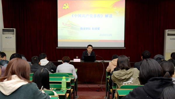 黨委副書記彭虎軍以《中國(guó)共產(chǎn)黨章程》解讀為題為學(xué)員們作了專題報(bào)告。他從黨章的基本定位、黨章的歷史沿革、十九大黨章解讀、怎樣學(xué)習(xí)黨章四個(gè)方面對(duì)《中國(guó)共產(chǎn)黨章程》進(jìn)行了深入淺出的講解。