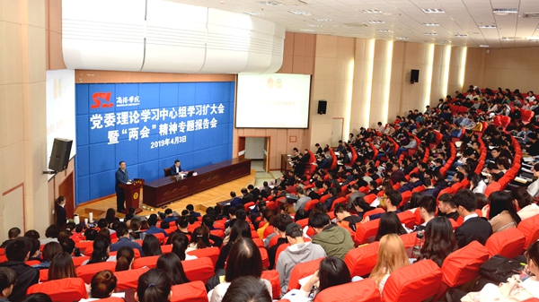 龍治剛在主持時表示,高嶺代表的報告既從整體上完整把握全國兩會的精神內(nèi)涵,又重點(diǎn)突出、深入淺出、親切生動,對我校師生領(lǐng)會全國兩會精神具有重要啟迪作用。他要求全校師生,要堅(jiān)持以習(xí)近平新時代中國特色社會主義思想為指導(dǎo),通過多種形式認(rèn)真學(xué)習(xí)貫徹落實(shí)全國兩會精神,準(zhǔn)確把握中央對發(fā)展形勢的科學(xué)判斷和對今年工作的部署要求,把思想和行動統(tǒng)一到中央決策部署上來,緊密結(jié)合學(xué)校工作實(shí)際,把全國兩會精神轉(zhuǎn)化為深化改革、推動發(fā)展的具體行動,為建設(shè)一流應(yīng)用型本科院校做出新的貢獻(xiàn),以優(yōu)異成績慶祝中華人民共和國成立70周年。