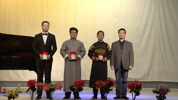 本次藝術(shù)活動旨在深入貫徹全國教育大會精神,用多彩的藝術(shù)形式引導(dǎo)大學(xué)生堅(jiān)定理想信念,營造良好校園文化氛圍。活動包括好聲音、書畫、誦讀三個(gè)比賽環(huán)節(jié),其中好聲音、書畫比賽分為專業(yè)組和非專業(yè)組兩個(gè)比賽組別,經(jīng)過激烈角逐、現(xiàn)場打分和綜合評比,最終好聲音比賽《望月》作品獲得專業(yè)組一等獎、《出現(xiàn)又離開》作品獲得非專業(yè)組一等獎;書畫比賽《自畫像》作品獲得專業(yè)組一等獎、《錦上添花》作品獲得非專業(yè)組一等獎;誦讀比賽《祖國頌》作品獲得一等獎,另有10個(gè)參賽作品獲得二等獎,15個(gè)參賽作品獲得三等獎。參加晚會的相關(guān)單位負(fù)責(zé)人現(xiàn)場分別為獲獎作品頒發(fā)了榮譽(yù)證書并合影留念。