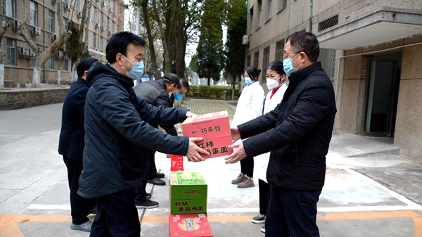 連日來(lái),我校教職工上下一心、堅(jiān)守陣地,落實(shí)落細(xì)各項(xiàng)防控措施,全力以赴做好疫情防控工作,取得了良好的工作成效和社會(huì)示范效應(yīng)。為此,陜西省教科文衛(wèi)體工會(huì)還專門給我校疫情防控工作撥付了補(bǔ)助金。2月20日,校黨委副書記彭虎軍、副校長(zhǎng)王新軍帶著省教科文衛(wèi)體工會(huì)的關(guān)心和支持,帶著校黨委、校工會(huì)、全體師生的關(guān)懷和牽掛,走訪慰問了堅(jiān)守在學(xué)??挂咭痪€的工作人員,把牛奶、八寶粥、方便面等慰問品送到他們身邊,感謝他們?yōu)橐咔榉揽刈鞒龅呢暙I(xiàn),鼓勵(lì)他們堅(jiān)定信心、強(qiáng)化責(zé)任,以細(xì)之又細(xì)、實(shí)之又實(shí)的作風(fēng)堅(jiān)決打贏這場(chǎng)疫情防控阻擊戰(zhàn),叮囑他們?cè)诼穆毐M責(zé)的同時(shí)務(wù)必加強(qiáng)個(gè)人防護(hù),緩解心理壓力,避免疲勞作戰(zhàn),確保身心健康安全。
