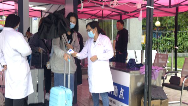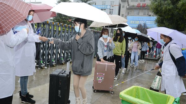 學(xué)校高度重視此次演練,制定了詳細(xì)的演練方案,模擬設(shè)置了學(xué)生報(bào)到、餐廳就餐、應(yīng)急情況處理等多個(gè)場(chǎng)景,對(duì)新生報(bào)到流程進(jìn)行了全景模擬。演練自校門外開始,參演學(xué)生佩戴口罩、攜帶行李,以1米以上間隔依次進(jìn)行更換口罩、測(cè)量體溫、信息識(shí)別登記、物品消殺等程序后,通過(guò)測(cè)溫門進(jìn)入校門,按照?qǐng)?bào)到流程,在新生登記處進(jìn)行登記。門崗處還設(shè)置了臨時(shí)留觀點(diǎn),為體溫異常的報(bào)到新生做進(jìn)一步檢測(cè)處理。餐廳實(shí)行錯(cuò)峰、分餐制,演練學(xué)生佩戴口罩在餐廳入口處洗手、測(cè)溫、消毒后有序進(jìn)入餐廳,間隔1米以上距離排隊(duì)點(diǎn)餐、取餐,保持距離、單向就座,就餐結(jié)束后,有序從指定出口排隊(duì)離開。