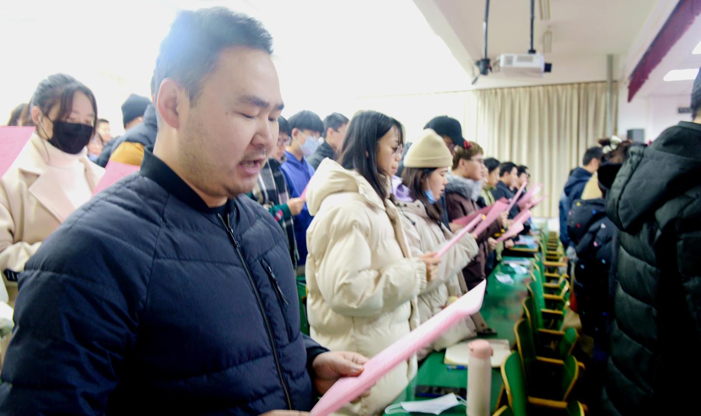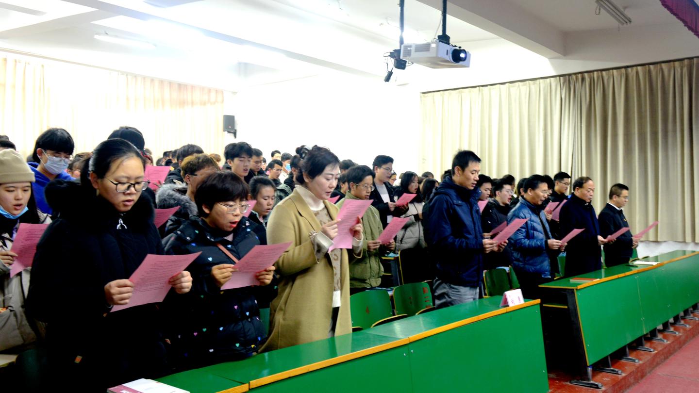 ——組織參加國家憲法日“憲法晨讀”活動(dòng)。12月4日上午,校黨委副書記劉勇,宣傳部、學(xué)工部、團(tuán)委負(fù)責(zé)人,和馬克思主義學(xué)院法學(xué)專業(yè)教師、二級(jí)學(xué)院師生代表190人,在1號(hào)樓報(bào)告廳二共同收看、參與了教育部普法網(wǎng)平臺(tái)直播的“憲法晨讀”活動(dòng)。上午9:00,全體起立,跟隨直播現(xiàn)場行注目禮、唱國歌、跟讀憲法條款內(nèi)容,與北京主會(huì)場同唱《憲法伴我們成長》歌曲,觀看了優(yōu)秀學(xué)生代表的現(xiàn)場展演。大家表示,通過參加晨讀活動(dòng),進(jìn)一步強(qiáng)化了憲法意識(shí),增強(qiáng)了愛國主義情感,我們要帶頭學(xué)習(xí)、宣傳憲法內(nèi)容,讓憲法精神在校園扎根。