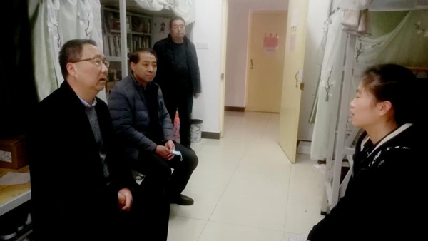 1月27日,校黨委書記龍治剛、副校長王新軍在黨委辦公室·院長辦公室和后勤保障處相關(guān)負(fù)責(zé)人的陪同下,前往學(xué)生宿舍看望慰問寒假期間因疫情滯留在校的2名(石家莊籍、邢臺籍)學(xué)生。