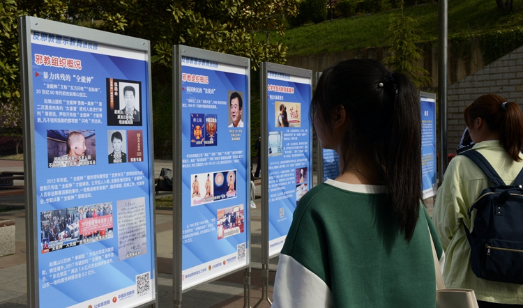 活動最后還組織師生在標(biāo)語上簽名,掃描關(guān)注“中國反邪教”二維碼并進(jìn)行答題,參觀防范邪教宣傳展板。