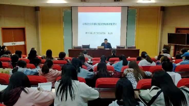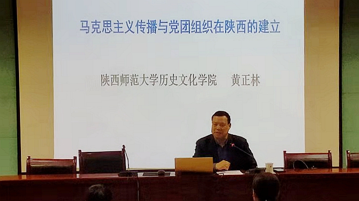 4月28日下午,馬克思主義學(xué)院在圖書(shū)館一樓報(bào)告廳舉辦黨史學(xué)習(xí)教育專題報(bào)告會(huì)。特邀陜西師范大學(xué)歷史文化學(xué)院教授、博士生導(dǎo)師黃正林為師生作了主題為“馬克思主義傳播與陜西黨團(tuán)組織的建立”的學(xué)術(shù)報(bào)告會(huì)。報(bào)告會(huì)由馬克思主義學(xué)院院長(zhǎng)蔣正治主持。