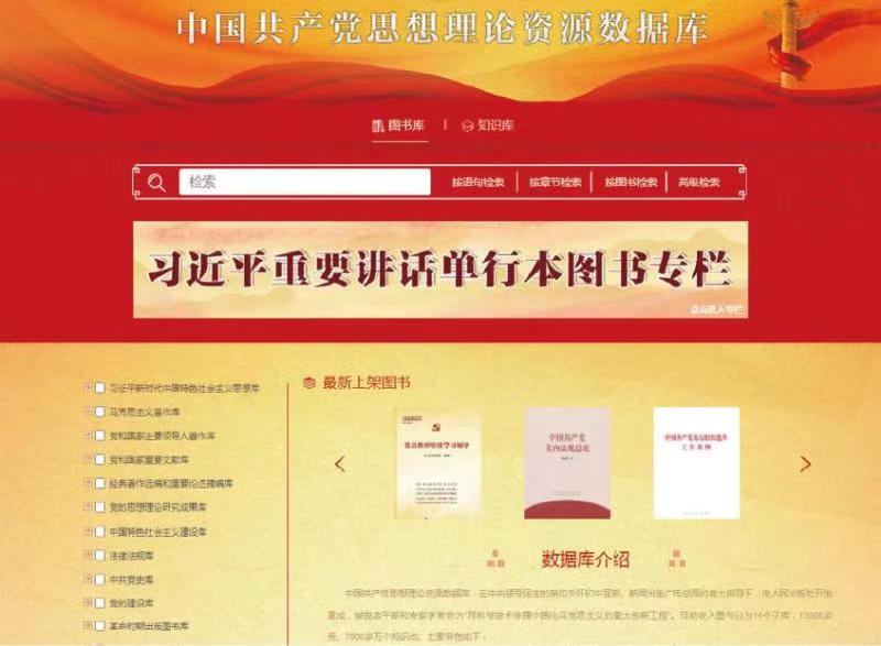 中國共產(chǎn)黨思想理論資源數(shù)據(jù)庫,是在中央領(lǐng)導(dǎo)同志的親切關(guān)懷和中宣部、新聞出版廣電總局的有力指導(dǎo)下,由人民出版社開發(fā)建成,被黨政干部和專家學(xué)者稱為“用科學(xué)技術(shù)傳播中國化馬克思主義的重大創(chuàng)新工程”。數(shù)據(jù)庫包含14個子庫,收入圖書13000余冊、涵蓋7000多萬個知識點,完整系統(tǒng)地收入了黨的思想理論主要著作文獻(xiàn),內(nèi)容覆蓋了我國出版的所有馬列經(jīng)典著作、黨和國家主要領(lǐng)導(dǎo)人所有著作、公開發(fā)表的所有中央文件文獻(xiàn)、國家所有法律法規(guī)、黨的思想理論領(lǐng)域所有知識點。數(shù)據(jù)庫還有代表性地收入了大量研究性著作、黨史和國際共運史著作、重要人物資料,以及革命戰(zhàn)爭年代出版的部分重要圖書等。