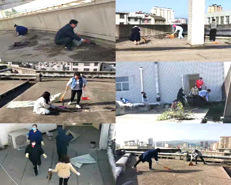 在圖書館黨政負責人的帶領下,40余名館員手持勞動工具,全面清理了圖書樓樓頂堆積已久的磚頭、水泥塊、廢棄建筑材料,鏟走下水口附近雨水沖積的淤泥、垃圾,疏通了排水管道,清理了三十多立方垃圾,為師生營造了良好的閱讀及學習環(huán)境。