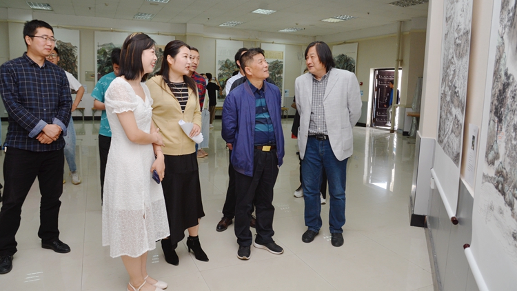 開幕式結(jié)束后,范新會在相關(guān)負責人的陪同下參觀了畫展,并與創(chuàng)作學生進行了親切交流。