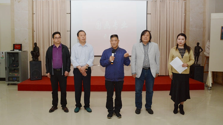 范新會在講話中指出,藝術(shù)學院結(jié)合區(qū)域人文特色,凝練打造以“秦嶺畫派”為代表的地方文化藝術(shù)品牌,為商洛文化藝術(shù)發(fā)展作出了積極貢獻。2020年我校美術(shù)學專業(yè)成功獲批省級“一流專業(yè)”,是學校深化教育教學改革、積極探索應(yīng)用型人才培養(yǎng)模式的成果體現(xiàn),也是美術(shù)學專業(yè)全體師生共同努力的結(jié)果。范新會要求藝術(shù)學院廣大師生堅持以習近平新時代中國特色社會主義思想為指導,以大秦嶺的自然生態(tài)和商洛人文歷史為背景,描繪商洛的好山好水,描繪商洛人民及我校師生在鄉(xiāng)村振興及全面建設(shè)社會主義現(xiàn)代化國家新征程上只爭朝夕、真抓實干的優(yōu)秀事跡,為我校高質(zhì)量發(fā)展貢獻更大力量。