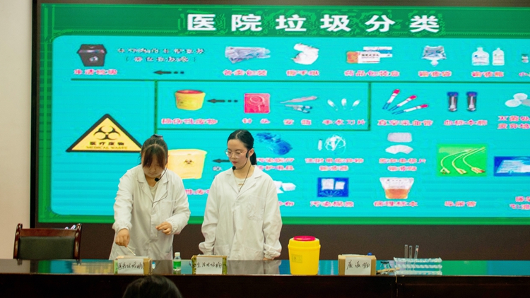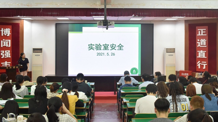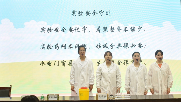 魏彩霞在報告中以“安全試驗,快樂探索”為主題,用生動的語言、鮮活的事例介紹了實驗室用水、用電、用氣、用火、試劑安全、廢液處理、人身防護等實驗室安全知識,強調(diào)了實驗室安全的重要性,提醒師生重視實驗室安全防范。 護理學1901班的蘇煥敏等4名同學表演了實驗室安全操作情景劇,通過錯誤操作與規(guī)范演示的對比,向師生們展示了實驗室安全操作中的注意事項,加深了大家對實驗安全的認知。