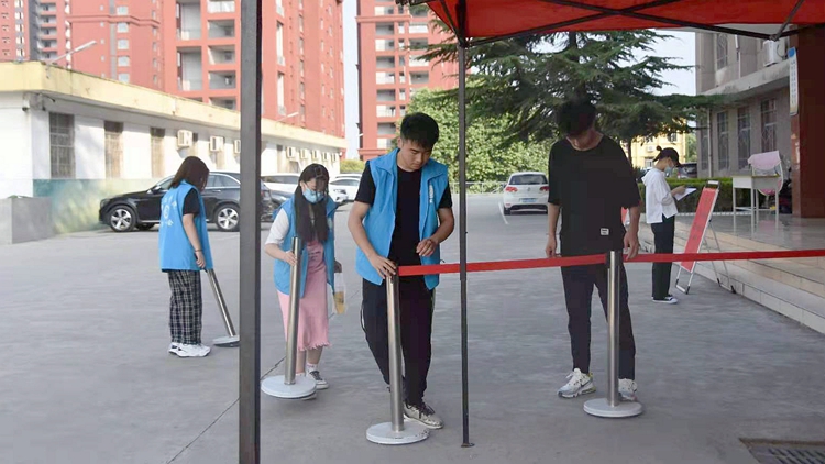 疫苗接種現(xiàn)場(chǎng),志愿者們秉承“全心全意為同學(xué)服務(wù)”的宗旨,合理分工、各司其職,有序開展志愿服務(wù)工作,協(xié)同負(fù)責(zé)疫苗接種全流程的秩序維護(hù)。在接種學(xué)生排隊(duì)過程中,為緩解排隊(duì)壓力,志愿者們及時(shí)調(diào)整各登記處的排隊(duì)人數(shù),在排隊(duì)等候區(qū)搭建遮陽帳篷、拉秩序帶,為接種者營造舒適的環(huán)境,并積極配合醫(yī)務(wù)人員對(duì)前來接種的學(xué)生進(jìn)行引導(dǎo),耐心解答學(xué)生提出的問題,確保疫苗接種工作的有序進(jìn)行,以實(shí)際行動(dòng)踐行“奉獻(xiàn)、友愛、互助、進(jìn)步”志愿精神。