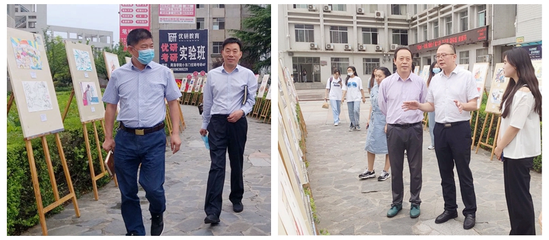 為推動(dòng)黨史學(xué)深學(xué)活學(xué)實(shí),探索用“藝術(shù)+黨史”的方式引導(dǎo)師生頌黨恩、聽黨話、跟黨走,6月17日-18日,藝術(shù)學(xué)院黨總支舉辦了“憶百年黨史、繪千萬英雄、展中國精神”專題漫畫創(chuàng)作展。校長范新會(huì)、黨委副書記彭虎軍、副校長郭瑾蒞臨展覽現(xiàn)場并作指導(dǎo),藝術(shù)學(xué)院負(fù)責(zé)人及1000余名師生觀看了展覽。