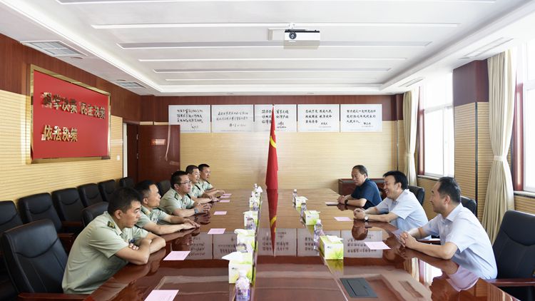 7月30日,在八一建軍節(jié)即將到來(lái)之際,校黨委副書(shū)記彭虎軍在黨委辦公室、學(xué)工部負(fù)責(zé)人的陪同下,前往武警商洛支隊(duì)開(kāi)展擁軍慰問(wèn)活動(dòng)。武警商洛支隊(duì)隊(duì)長(zhǎng)李海剛、政委梁棟及官兵代表與彭虎軍一行進(jìn)行了座談交流。