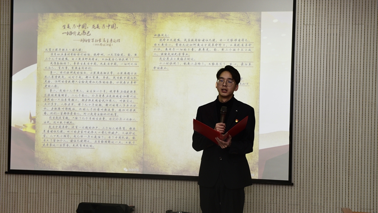 紅色家書映照初心,革命故事感人肺腑。由生物學(xué)院楊政同學(xué)誦讀的《紅色家書》之《劉伯堅寫給家屬至親的信》,感動了在場所有人員。為了深刻感悟革命志士堅定的理想信念,生物學(xué)院學(xué)生王梓欣等同學(xué)以舞臺劇《不負(fù)使命不負(fù)卿》的形式,深情演繹了夏明翰、鄧稼先、趙云霄等共產(chǎn)黨人堅守初心、締造偉大事業(yè)的紅色家風(fēng)故事。