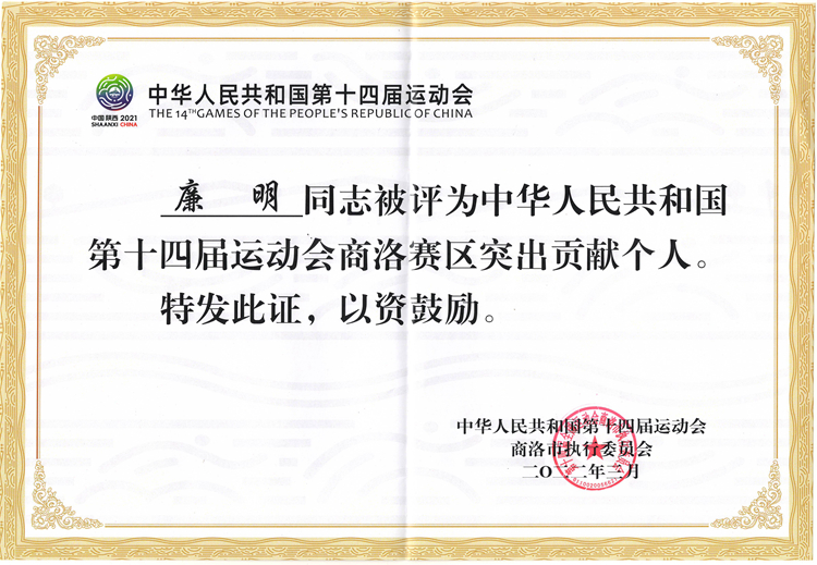 近日,第十四屆全國(guó)運(yùn)動(dòng)會(huì)商洛市執(zhí)行委員會(huì)發(fā)布了《關(guān)于第十四屆全國(guó)運(yùn)動(dòng)會(huì)商洛賽區(qū)籌辦工作情況的通報(bào)》(十四運(yùn)發(fā)〔2022〕1號(hào)),我校榮獲十四運(yùn)會(huì)商洛賽區(qū)籌辦工作“突出貢獻(xiàn)單位”榮譽(yù),數(shù)計(jì)學(xué)院黨總支書(shū)記廉明(原團(tuán)委副書(shū)記)榮獲十四運(yùn)會(huì)商洛賽區(qū)籌辦工作“突出貢獻(xiàn)個(gè)人”榮譽(yù)稱(chēng)號(hào)。