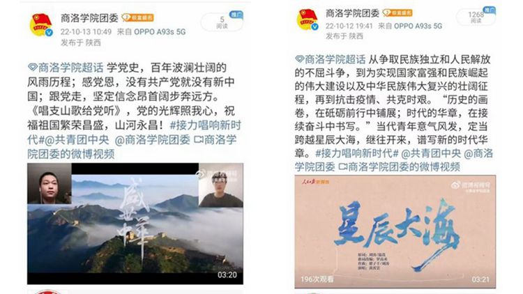“接力唱響新時(shí)代”微博接力活動(dòng)通過(guò)發(fā)布歌唱視頻的方式參與微博話(huà)題。校團(tuán)委組織藝術(shù)學(xué)院優(yōu)秀學(xué)子傾情演唱《星辰大?!贰冻礁杞o黨聽(tīng)》《我愛(ài)你,中國(guó)》《國(guó)家》以及《我的祖國(guó)》等紅色歌曲,以此唱響心中理想、唱出青春最強(qiáng)音,以青春的姿態(tài)、昂揚(yáng)的歌聲抒發(fā)對(duì)黨的誠(chéng)摯熱愛(ài)和深厚情感。