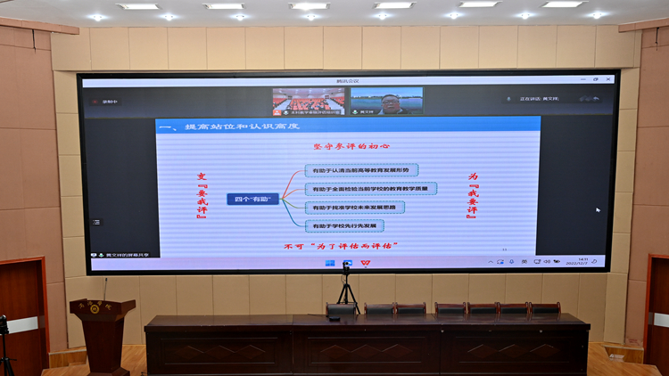 劉寶盈向與會者提出了三點要求。一是要有責任意識,增強評建工作自覺性;二是要把握內(nèi)涵,對標開展評建工作,要即知即改,及早自查自糾持續(xù)改進,統(tǒng)籌部署,一體謀劃推進日常教學(xué)和評建工作;三是全校上下要齊心協(xié)力、團結(jié)協(xié)作,共同做好審核評估迎評工作。