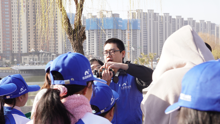 在生物學(xué)院張博博士的帶領(lǐng)下,寺坪初級中學(xué)的同學(xué)們現(xiàn)場學(xué)習(xí)了各種鳥類的棲息環(huán)境、飛行方式及野生動物保護知識,學(xué)會了根據(jù)體型、羽色、行為來識別鳥的方法。他們化身成小小鳥類觀察員,通過科學(xué)的觀鳥方法尋找鳥兒的蹤跡。在望遠鏡的視野下,他們仔細觀察綠頭鴨、小??等8種棲息于丹江濕地的鳥類,親身體驗自然之美。