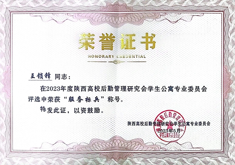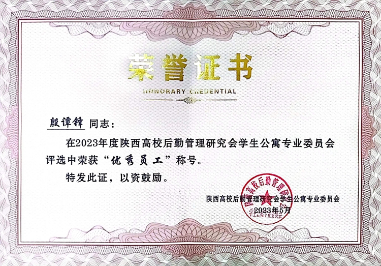 會(huì)上,陜西高校學(xué)生公寓專業(yè)委員會(huì)秘書(shū)長(zhǎng)賈亞新宣讀了《2023年度陜西高校學(xué)生公寓先進(jìn)集體、服務(wù)標(biāo)兵、優(yōu)秀員工》的表彰決定。我校后勤保障處獲得“陜西高校學(xué)生公寓先進(jìn)集體”榮譽(yù)稱號(hào),后勤保障處副處長(zhǎng)殷譚鋒被評(píng)為陜西高校學(xué)生公寓“優(yōu)秀員工”,后勤保障處職工王鎖鋒被評(píng)為陜西高校學(xué)生公寓“服務(wù)標(biāo)兵”。后勤保障處處長(zhǎng)李彥廣作為嘉賓之一為優(yōu)秀員工代表頒發(fā)獎(jiǎng)狀。