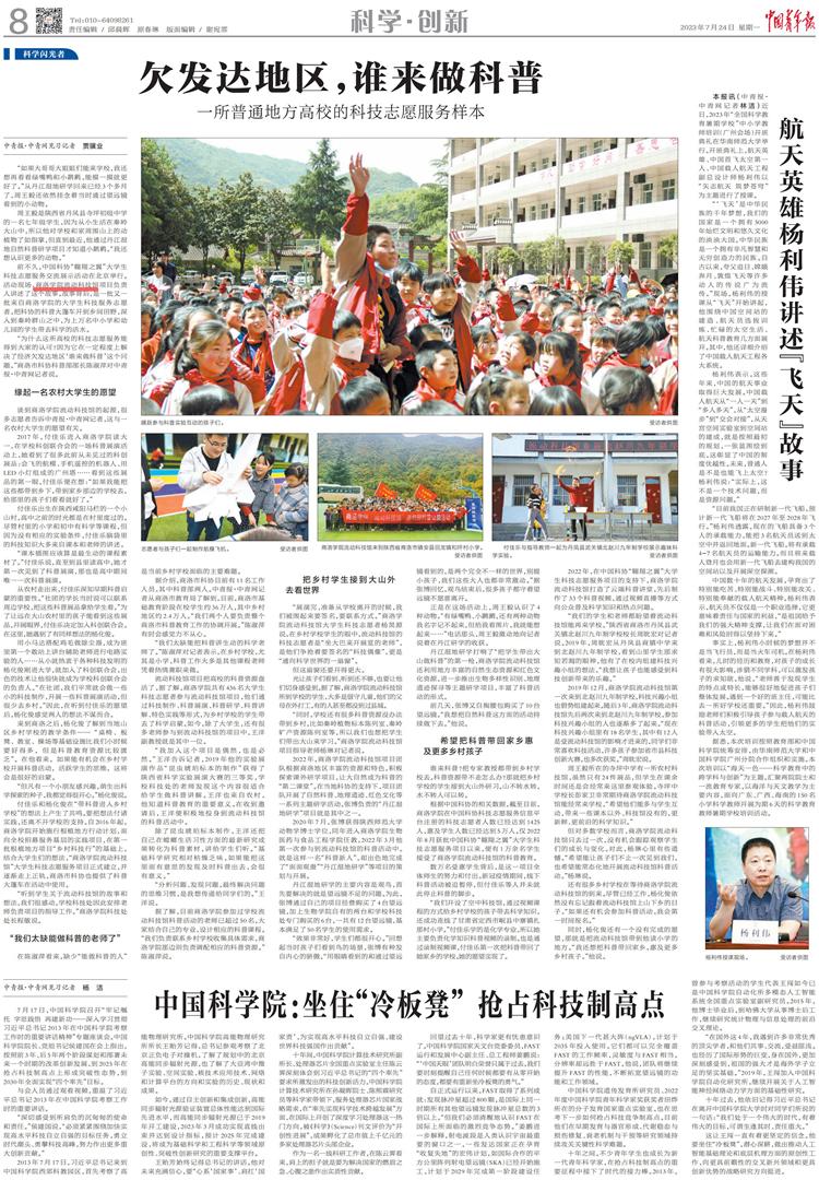 7月24日,《中國青年報》第8版以《欠發(fā)達(dá)地區(qū),誰來做科普一所普通地方高校的科技志愿服務(wù)樣本》為題,對我校流動科技館科技志愿服務(wù)項目進(jìn)行了專題報道。