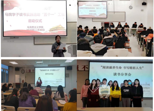 近年來(lái),馬克思主義學(xué)院以“學(xué)思踐悟 真知真行——馬院學(xué)子讀書(shū)實(shí)踐活動(dòng)‘五個(gè)一’工程”為載體,搭建了宣講團(tuán)、讀書(shū)會(huì)、報(bào)告會(huì)、社會(huì)實(shí)踐活動(dòng)、科研活動(dòng)五大平臺(tái),以此為依托,構(gòu)建三全育人機(jī)制,突出實(shí)踐性、育人性與創(chuàng)新性特色。