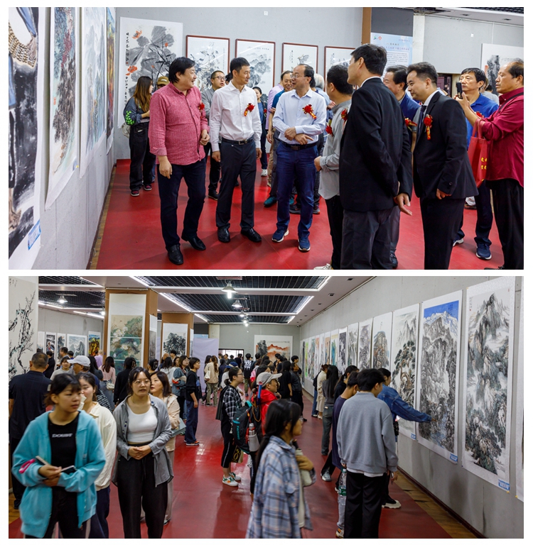 為深入貫徹落實(shí)習(xí)近平總書記在文藝工作座談會(huì)上的重要講話精神,充分發(fā)揮商洛學(xué)院“秦嶺畫派研究中心”科研平臺(tái)引領(lǐng)作用,全方位服務(wù)商洛社會(huì)、經(jīng)濟(jì)、文化、藝術(shù)再上新臺(tái)階,9月20日,由我校藝術(shù)學(xué)院、商洛市文學(xué)藝術(shù)界聯(lián)合會(huì)、商洛市文化和旅游局共同主辦的2023秦嶺畫派“禮贊秦嶺·大美商洛”主題美術(shù)作品展暨學(xué)術(shù)研討會(huì)在商洛市文化館開(kāi)幕。校黨委副書記劉勇,商洛市文化和旅游局局長(zhǎng)鞏文超,商洛市文聯(lián)副主席李志華,西安理工大學(xué)書畫研究院院長(zhǎng)王家民,秦嶺畫派發(fā)起人、我校藝術(shù)學(xué)院副教授劉鳳林出席開(kāi)幕式。省內(nèi)部分藝術(shù)家和藝術(shù)學(xué)院師生200余人參加開(kāi)幕式。