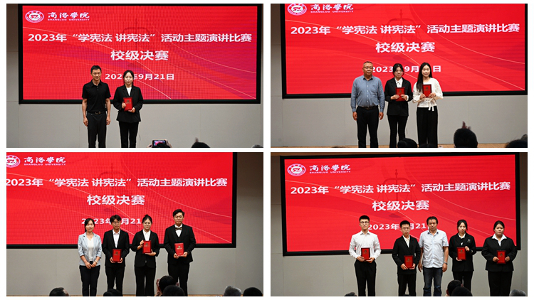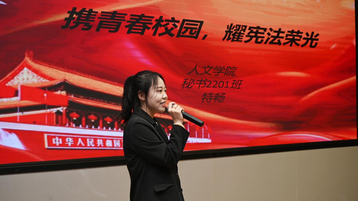 本次比賽自7月份啟動,由二級學(xué)院選拔推薦10名學(xué)生進(jìn)入校級決賽。決賽中,選手們圍繞“憲法與國家、憲法與社會、憲法與個人、社會主義法治國家”等主題,從習(xí)近平法治思想、憲法法治知識、身邊案例、新聞事件等方面入手,圍繞憲法學(xué)習(xí)感悟,結(jié)合成長經(jīng)歷,講述憲法故事,表達(dá)了努力成長為社會主義法治的忠實崇尚者、自覺遵守者、堅定捍衛(wèi)者,帶頭做憲法的“代言人”的決心。最終人文學(xué)院學(xué)生特暢榮獲一等獎,藝術(shù)學(xué)院學(xué)生姜荷、化材學(xué)院學(xué)生杜晴洋獲二等獎,馬克思主義學(xué)院學(xué)生李宇航、電信學(xué)院學(xué)生和婧、經(jīng)管學(xué)院學(xué)生劉徹獲三等獎,健康學(xué)院學(xué)生程怡、建工學(xué)院學(xué)生劉宇、生物學(xué)院學(xué)生張鈺晨、數(shù)計學(xué)院學(xué)生雷嘉龍獲優(yōu)秀獎。