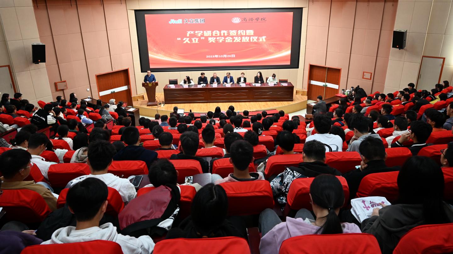 為鞏固“訪企拓崗”成果,不斷拓展校企合作與“一體兩翼”就業(yè)戰(zhàn)略,10月26日,我校舉行校企合作簽約暨久立獎學金發(fā)放儀式,與浙江久立集團股份有限公司簽約共建產(chǎn)學研基地,聘請久立集團浙江久立特材科技股份有限公司副總經(jīng)理周宇賓為兼職教授。浙江久立集團在我校設立“久立”獎學金。副校長王新軍出席儀式并為周宇賓頒發(fā)兼職教授聘書。久立集團人力資源部相關負責人,學生處、教務處、國內(nèi)合作與校友工作處、化材學院相關負責人及師生代表300余人參加儀式。