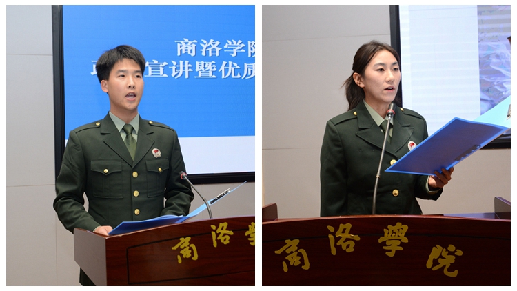 退伍學(xué)生代表王立強(qiáng)、甄蕊用真摯的情感,講述了各自帶著親人的囑托和學(xué)校的期盼參軍入伍,融入綠色軍營的心路歷程。他們表示,兩年的軍旅生涯讓他們塑造了健康體魄、磨煉了頑強(qiáng)意志、提升了學(xué)習(xí)能力、受到了精神洗禮。他們號召大學(xué)生應(yīng)積極響應(yīng)國家征兵政策,把報(bào)國之志轉(zhuǎn)化為實(shí)際行動(dòng),為富國強(qiáng)軍貢獻(xiàn)自己的才華和青春。