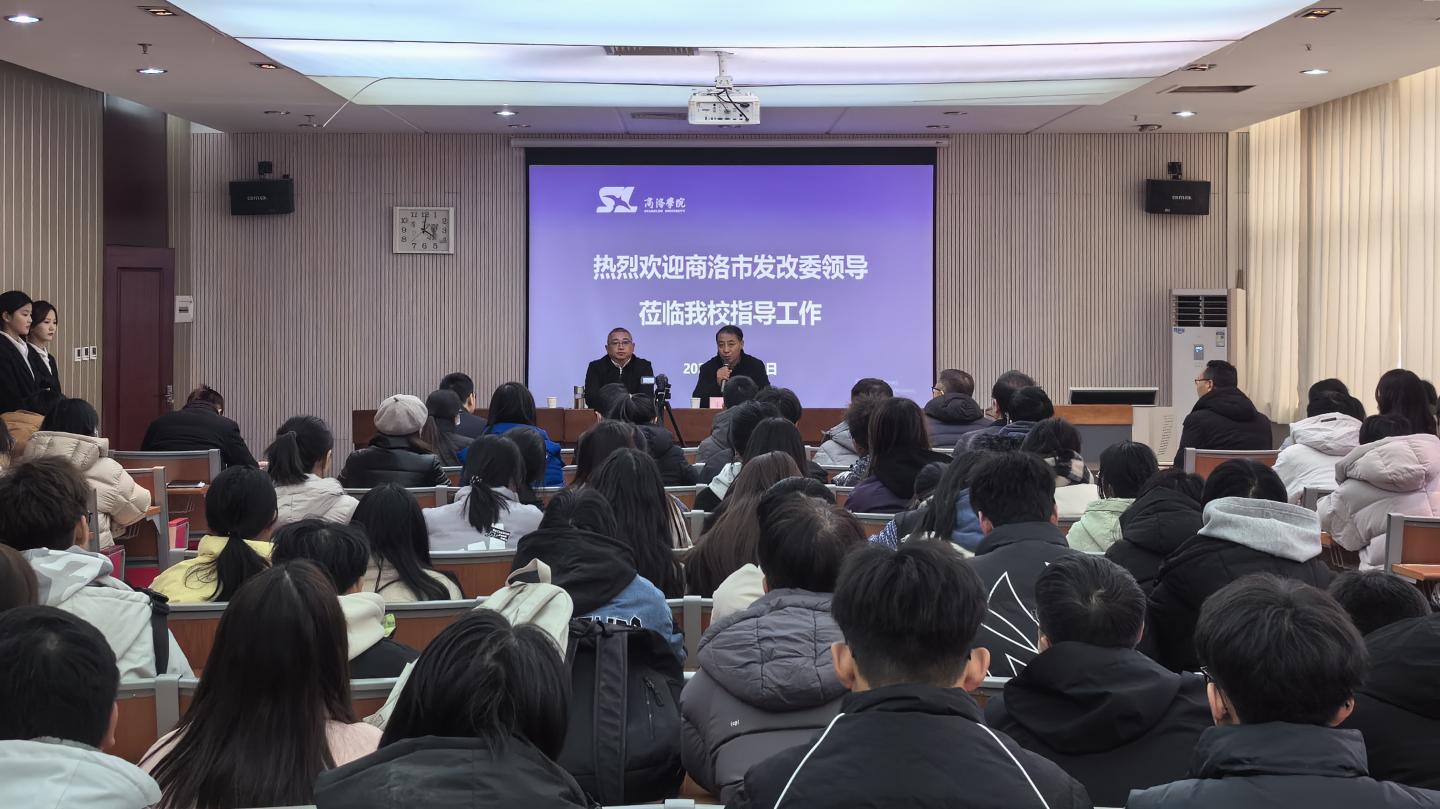 12月22日,我校邀請(qǐng)商洛市發(fā)展和改革委員會(huì)(商洛市糧食和物資儲(chǔ)備局)黨組書(shū)記、主任王宇鵬為生物學(xué)院糧食專(zhuān)業(yè)師生作專(zhuān)題報(bào)告。副校長(zhǎng)王新軍主持報(bào)告會(huì)。商洛市發(fā)改委(商洛市糧食和物資儲(chǔ)備局)副主任戴佳錕,市糧油質(zhì)量檢驗(yàn)所所長(zhǎng)胡海峰,生物學(xué)院領(lǐng)導(dǎo)班子成員和2023級(jí)糧食工程專(zhuān)業(yè)、食品工程專(zhuān)業(yè)師生100余人參加報(bào)告會(huì)。